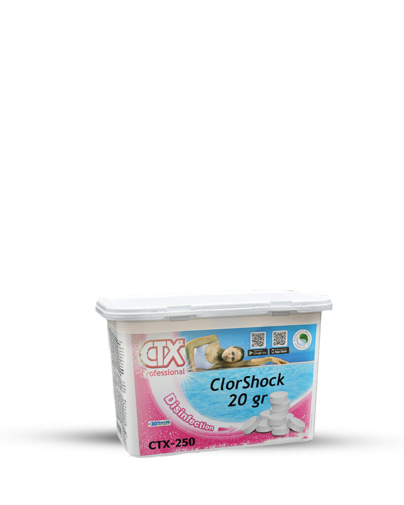 CTX 250 Cloro Effervescente è adatto a trattamenti shock, per raggiungere rapidamente elevate concentrazioni di cloro in vasca e per mantenere l’acqua cristallina e pura.