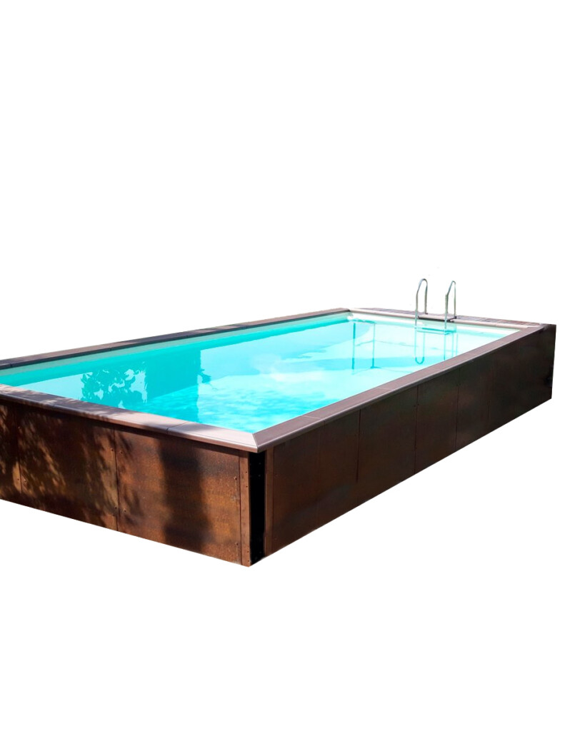 Dotazione: Vasca, bordo ecolegno, sistema troppo-pieno, faro/i LED, scala di sicurezza, aspirafango, impianto di filtrazione