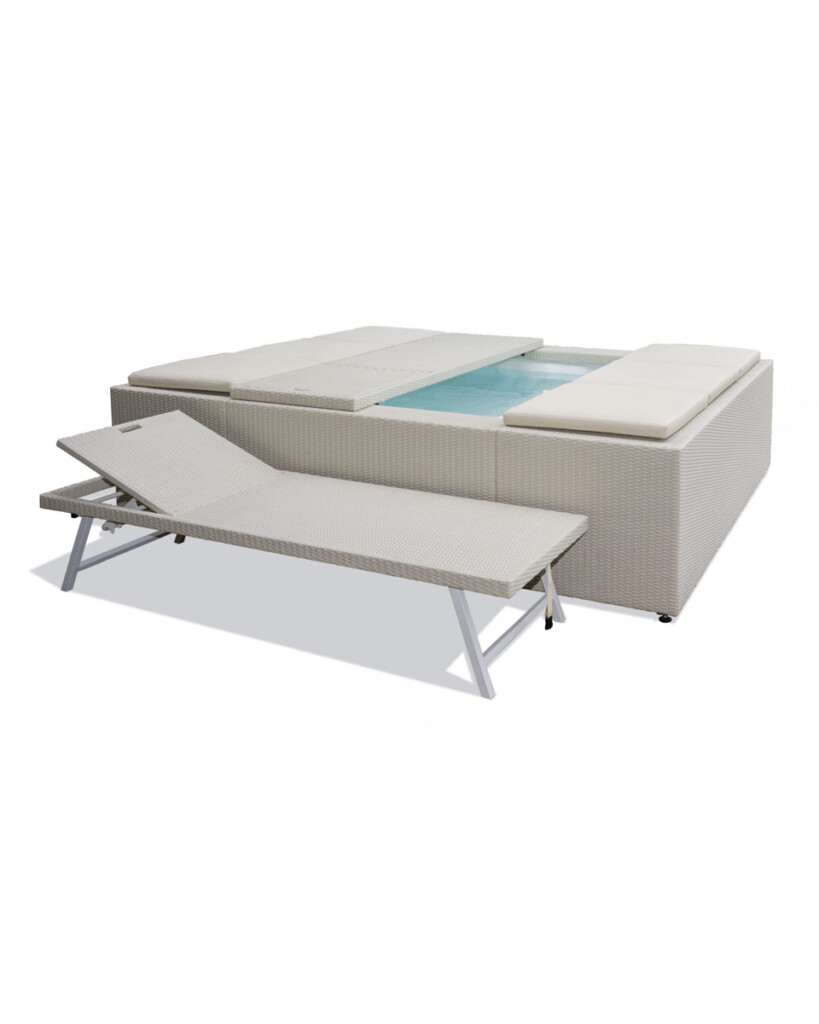Questa caratteristica si rispecchia perfettamente anche nel suo design, rivelando la passione italiana per uno stile particolarmente attento all’eleganza di linee pulite e moderne, che trasforma così la comune concezione di complemento d’arredo in una piscina in grado di diventare un vero e proprio salotto di conversazione e ritrovo in famiglia. Ciò è reso possibile anche dalla sua innovativa realizzazione: gli elementi dei lettini prendisole possono essere lasciati diritti o reclinati, per creare piani d’appoggio e sedute con cuscino che favoriscono così una piena socialità.