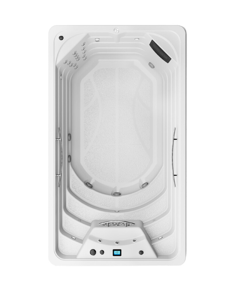 Questa piscina ad uso privato è adatta per ospitare tutta la tua famiglia, dai più piccoli, ad una zona libera di 2 metri per i più grandi, in cui poter alternare l’attività fisica ad un recupero muscolare garantito da un massaggio straordinario. Possiamo considerare Compact Pool un vero e proprio alleato dell’attività fitness grazie ai 4 potenti getti d’acqua di cui dispone, che consentono di praticare la camminata e il nuoto controcorrente, oltre ad esercizi di acquagym, tutti implementabili per mezzo del pacchetto Fitness, completo di asta con imbracatura ed elementi elastici da installare usando le sbarre in acciaio inossidabile. Per quanto riguarda invece la sua inconfondibile natura da Spa dedicata al benessere e al relax, oltre a integrare una colonna laterale di massaggio verticale, vanta le migliori funzioni di Aquavia tra cui: il sistema Colour Sense che dona un tocco di colore all’intera vasca idromassaggio con i suoi 5 faretti led subacquei a colorazioni fisse o in sequenza, una struttura metallica anticorrosione che racchiude al suo interno la tecnologia Silent Pump, ovvero una filtrazione a cartuccia ultra silenziosa, e l’Ultraviolet Treatment, il sistema di disinfezione a luce ultravioletta che consentirà di immergersi sempre in un’acqua fresca e cristallina.