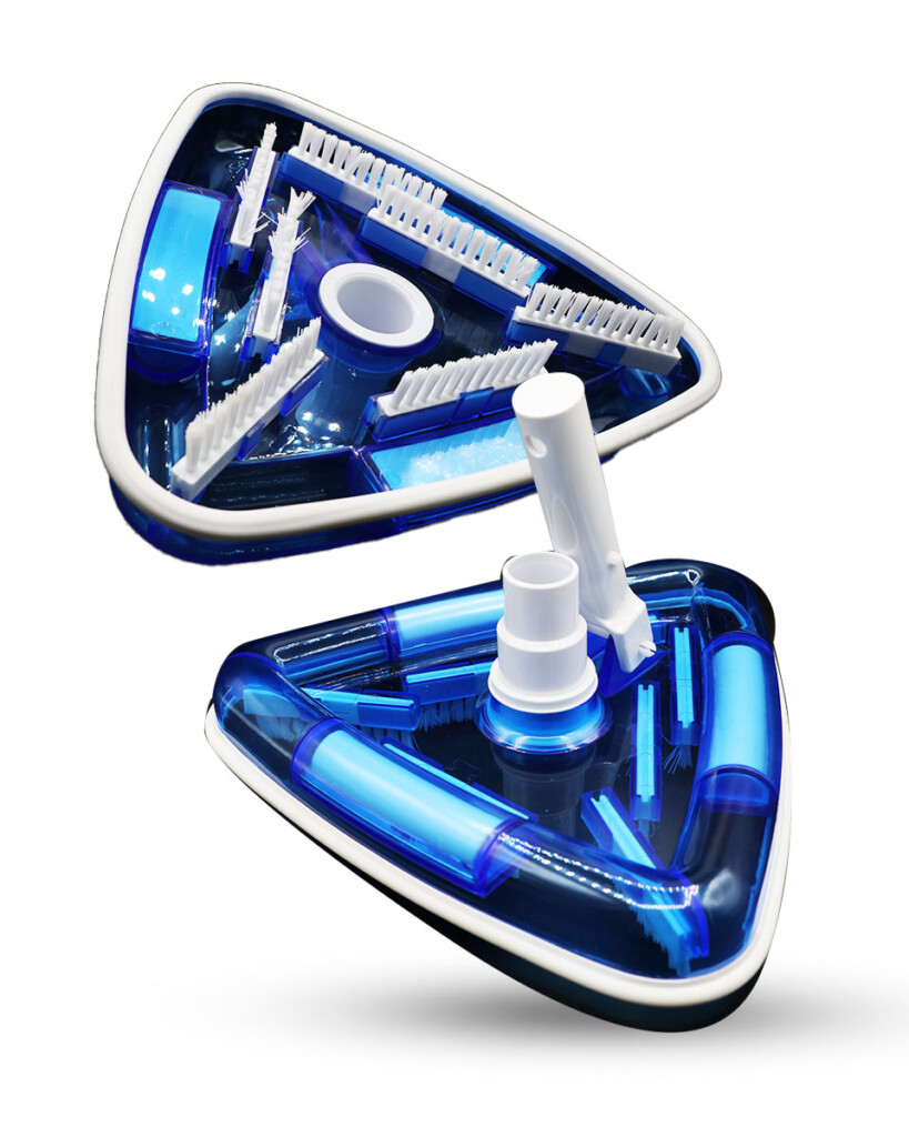 Desideri avere un fondo sempre limpido e pulito che possa riflettersi in una bellissima acqua cristallina? Allora prova il nostro aspiratore Evolution rotante, adatto per tutti i tipi di piscine interrate e caratterizzato da una forma triangolare per raggiungere efficacemente anche gli angoli più angusti. Grazie alle sue ben 7 spazzole poste nella parte inferiore, è in grado di rimuovere anche lo sporco più ostinato o eventuali alghe depositate sul fondo, che vengono contemporaneamente aspirate nel tubo flessibile e da lì trasportate nella pompa della piscina per il filtraggio. Inoltre, un secondo attacco superiore consente di collegare l’aspiratore ad un’asta telescopica per garantire una pulizia pratica e facilmente maneggevole. Questi due accessori a complemento possono essere facilmente acquistati separatamente. In questo modo potrete dire addio a qualsiasi tipo di impurità e godervi a pieno la vostra piscina!